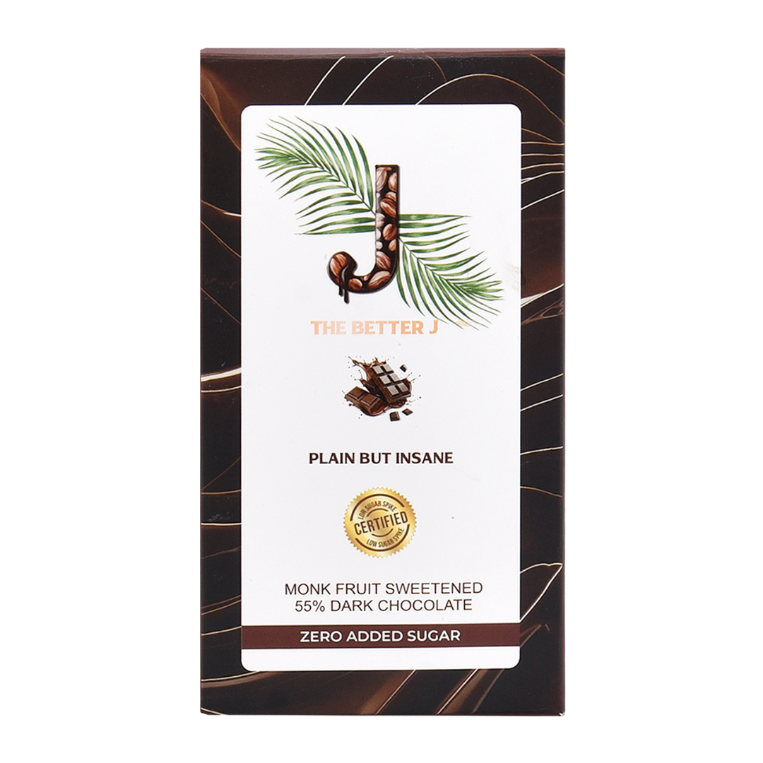 Plain but Insane by The Better J proves simplicity can be extraordinary. Made with premium dark cocoa and naturally sweetened with monk fruit, it delivers deep, bold flavor with a low sugar spike. With zero added sugar, no artificial flavors, no cocoa substitutes, and no emulsifiers, it’s clean chocolate — pure, powerful, and unapologetically real.